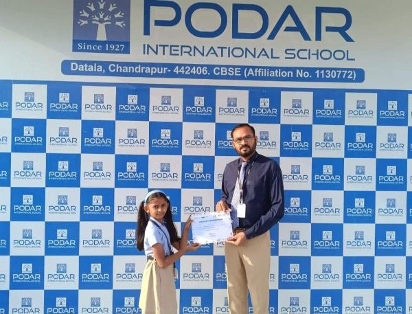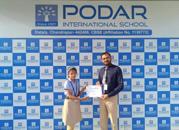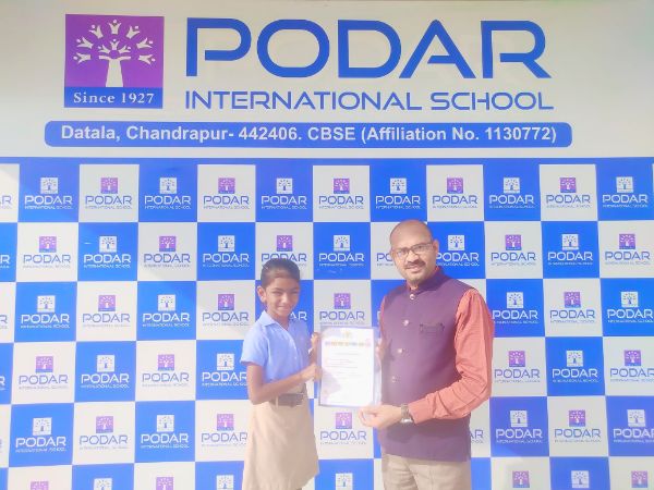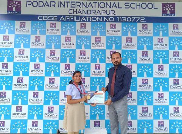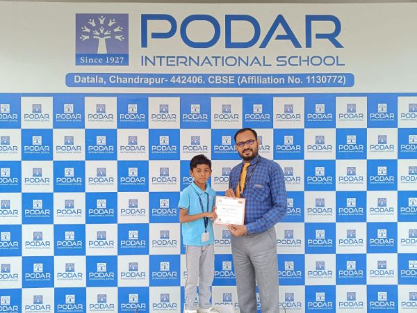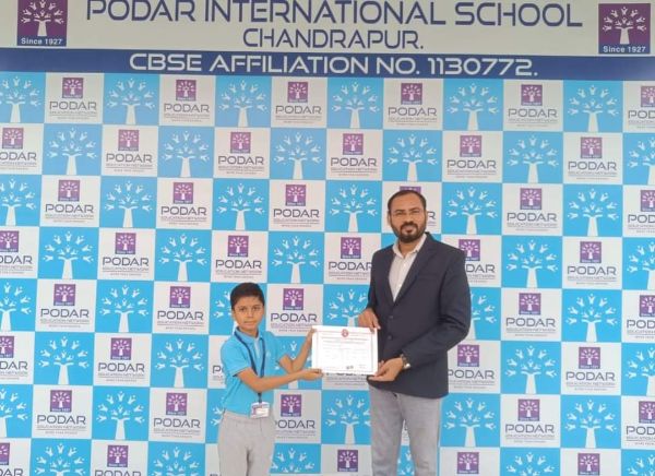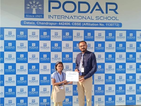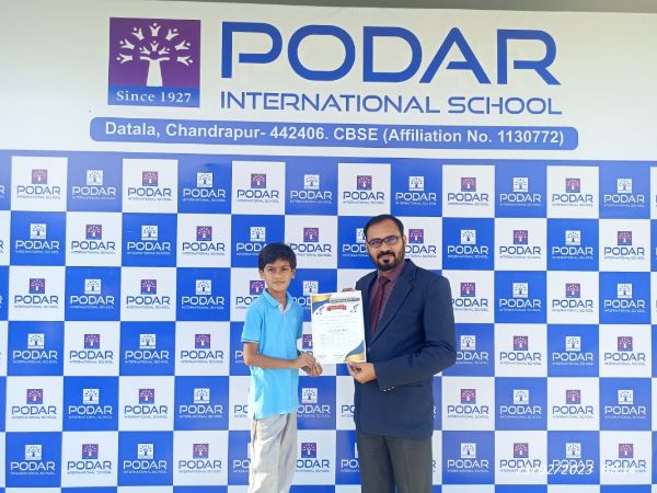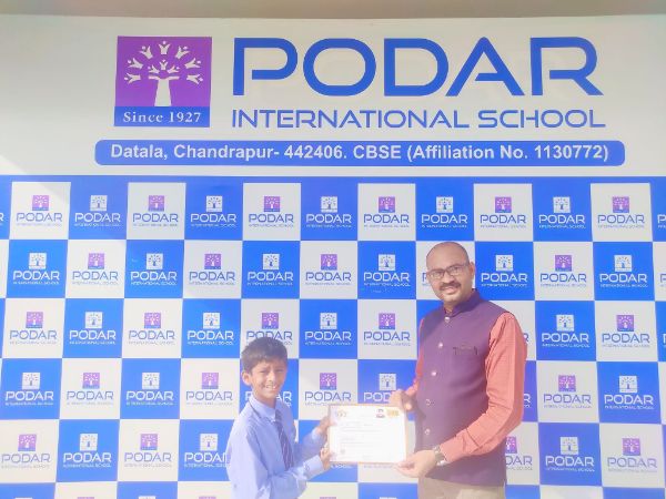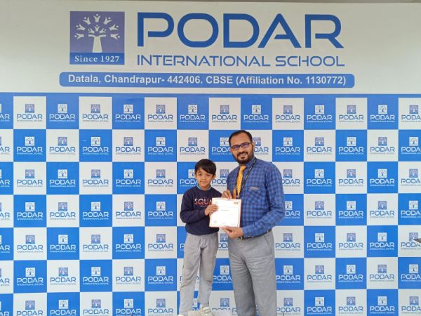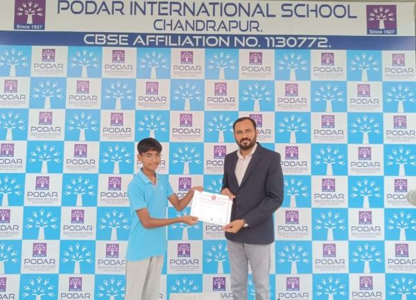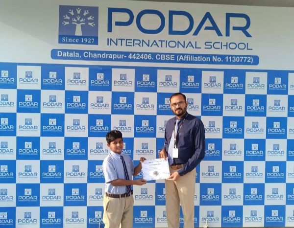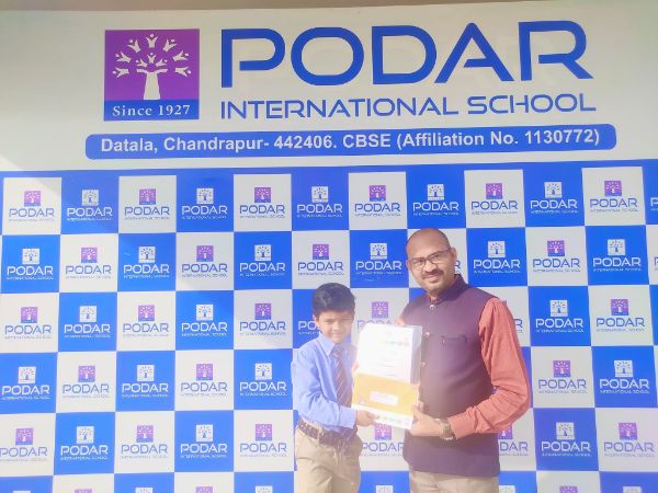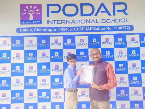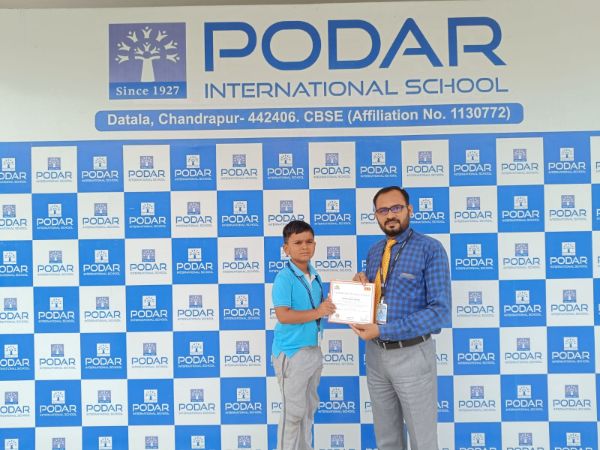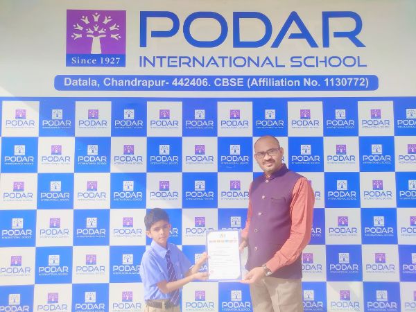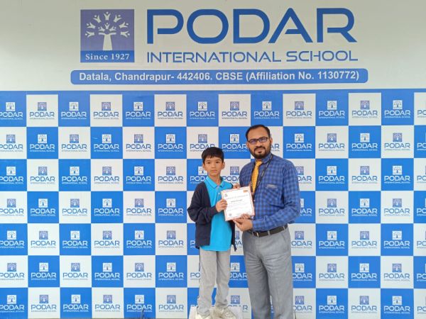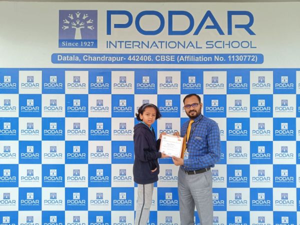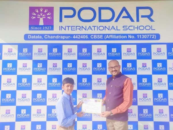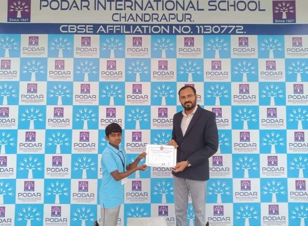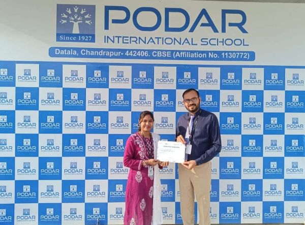 The principal of Podar International School #Chandrapur - Dr. Valmik Somase appreciated the musical endeavors of students by giving them certificates.