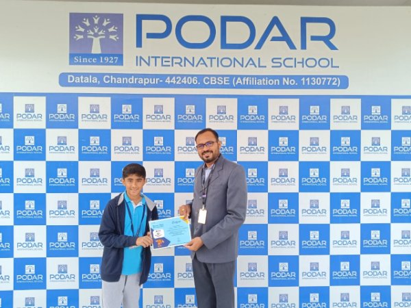 On May 2, 2025, Podar International School, Chandrapur proudly felicitated its brilliant young minds who excelled in the SOF Mathematics Olympiad. The ceremony was held to recognize the hard work, dedication, and outstanding performance of students in this prestigious national-level competition. Certificates of achievement were awarded to all qualifying students, encouraging them to continue their pursuit of academic excellence.