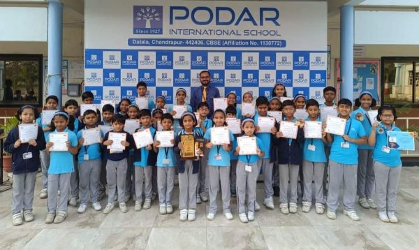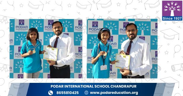 Podar International School #Chandrapur is proud to honor our exceptional young minds who have achieved remarkable milestones in the fields of English, Math, and Science Olympiads!