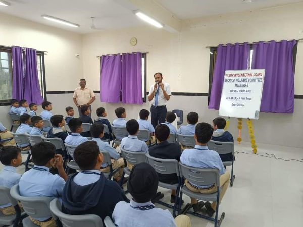 The Girls Welfare Meeting held at Podar International School, #Chandrapur on August 8, 2023, aimed to address important aspects of personal hygiene, menstrual health, and overall well-being among female students. The event featured Dr. Deepali Musale, a prominent medical professional from Musale Hospital, as the keynote speaker. The importance of promoting girls' well-being and hygiene was highlighted. She emphasized the importance of maintaining cleanliness and how it contributes to physical and mental well-being. She highlighted the need for regular hand wash, maintaining cleanliness of personal belongings, and adhering to proper etiquette in shared spaces, importance of consuming nutritious foods and cautioned against the harmful effects of consuming junk food. Students actively participated, seeking clarifications on various hygiene-related topics. Dr. Musale addressed queries, providing evidence-based answers and dispelling myths. Principal Dr. Valmik Somase extends gratitude to Dr. Deepali Musale for her valuable contribution and dedication to the well-being of our students.