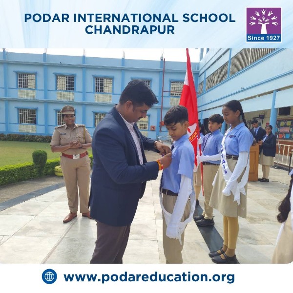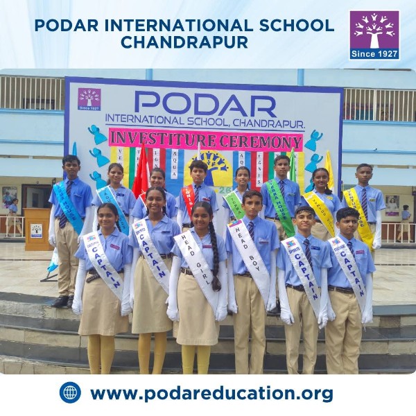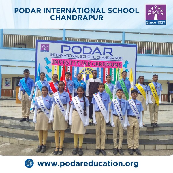 The investiture ceremony held at Podar International School, #Chandrapur on August 10, 2023, marked the official announcement of the Student Council for the academic year 2023-2024. The event began with the singing of the Maharashtra anthem by the school's students, setting a patriotic tone.