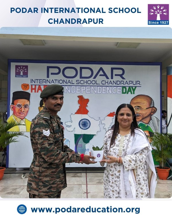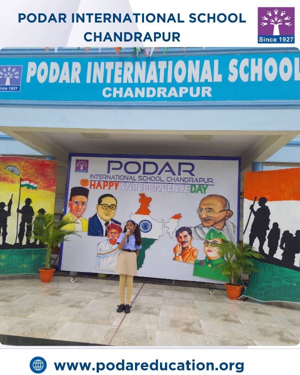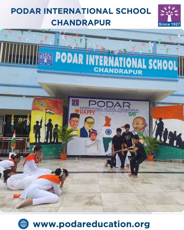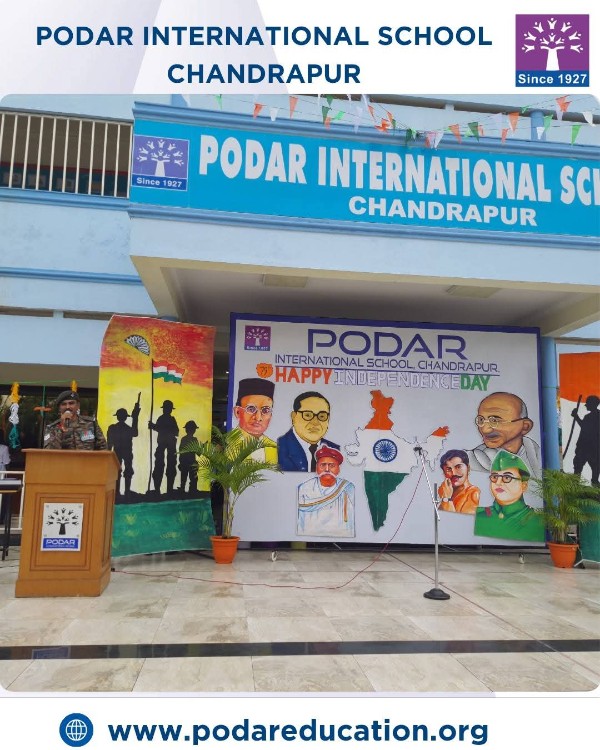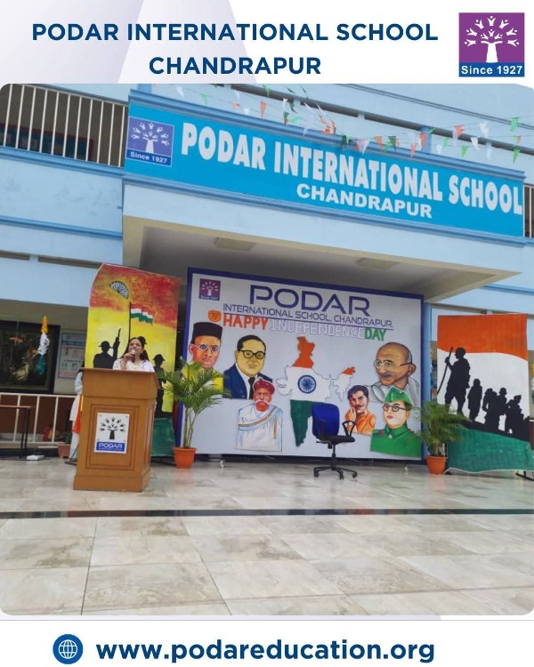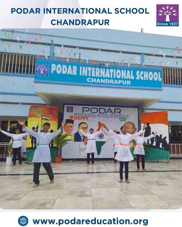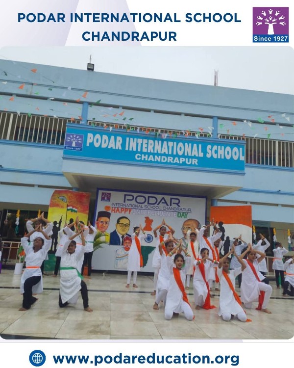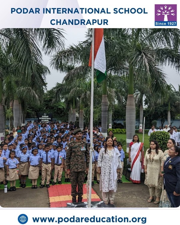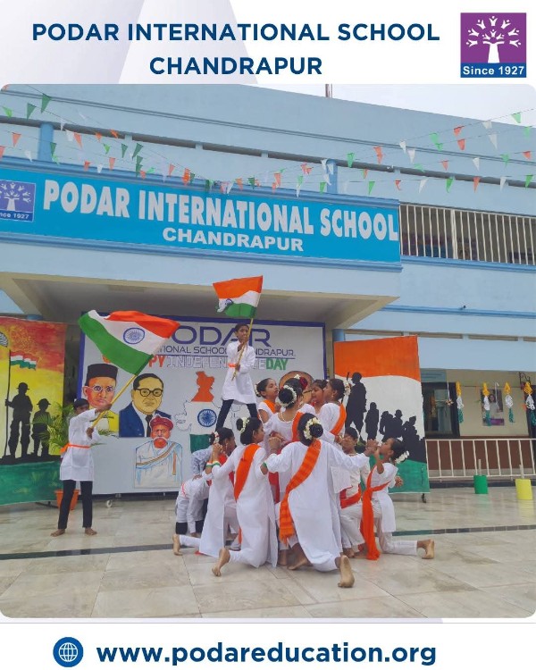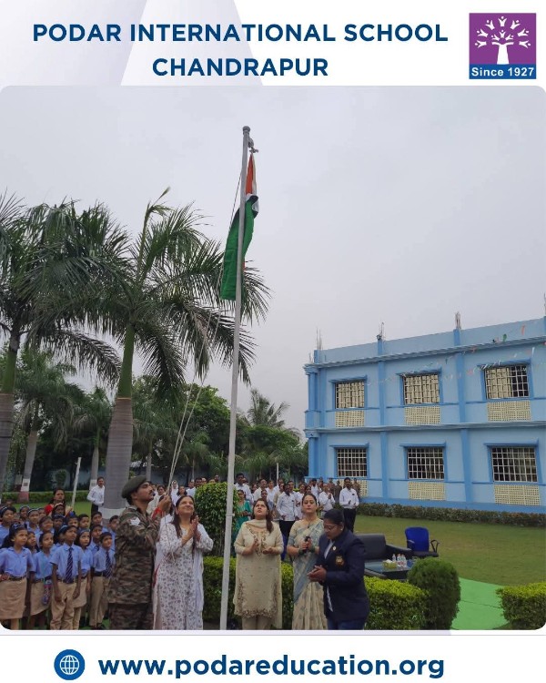 On 15th August 2025, Podar International School Chandrapur celebrated the 79th Independence Day with patriotic fervour. The ceremony began with flag hoisting, followed by inspiring songs, dances, speeches, and a skit by our talented students.