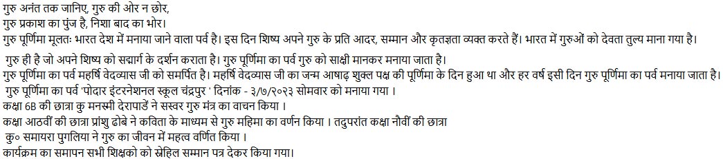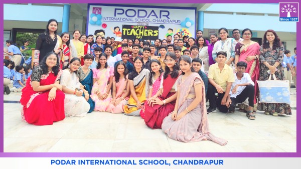 The Teacher's Day celebration organized by the 10th-grade students of Podar International School Datala #Chandrapur was a resounding success, leaving an indelible mark on the hearts of both teachers and students. It served as a beautiful reminder that the relationship between teachers and students is not only about education but also about the enduring bonds of respect and admiration that are formed in the process of learning and growing together. The main event of the day was a cultural program organized entirely by the students. It showcased a diverse array of talent, dance and anchoring. The students worked tirelessly to perfect their performances, and it was evident that they put their hearts into every act. The ground was filled with cheers and applause as the students showcased their talents.