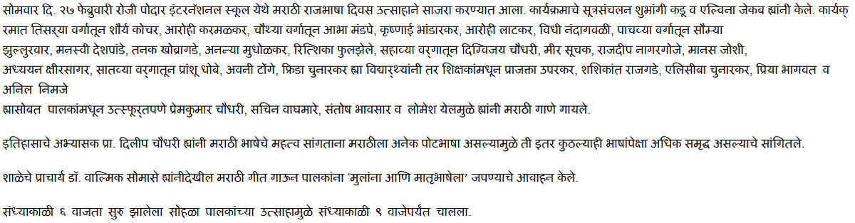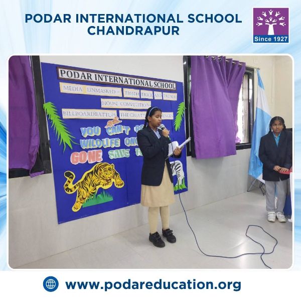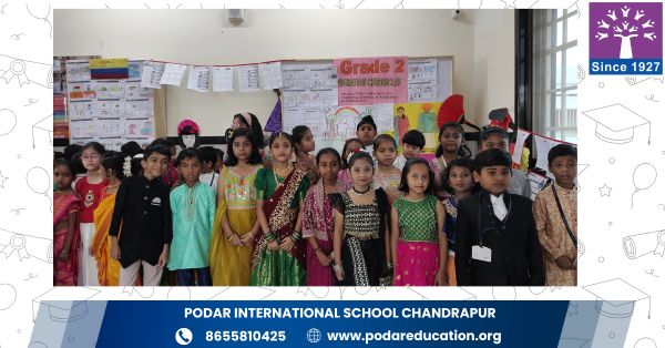 Podar International School, Chandrapur proudly celebrated Maharashtra Day with great zeal and cultural spirit. The event highlighted the rich history, pride, and significance of the formation of the state of Maharashtra. Students actively participated by sharing insightful information about the day and performed the Maharashtra Geet, reflecting their love and respect for the state.