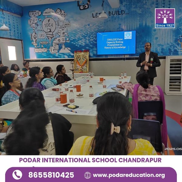 On 23rd June 2025, Podar International School, Chandrapur, proudly organized a CBSE training session on Theory of Knowledge, aimed at enriching educators’ understanding of critical thinking, knowledge construction, and interdisciplinary teaching strategies.