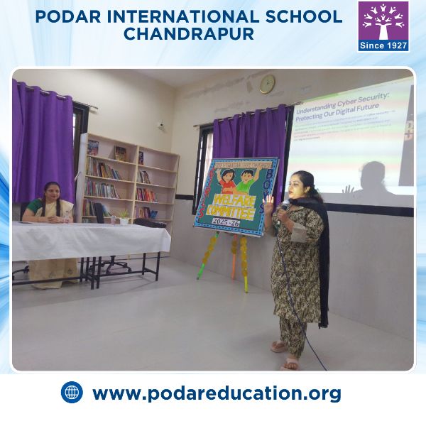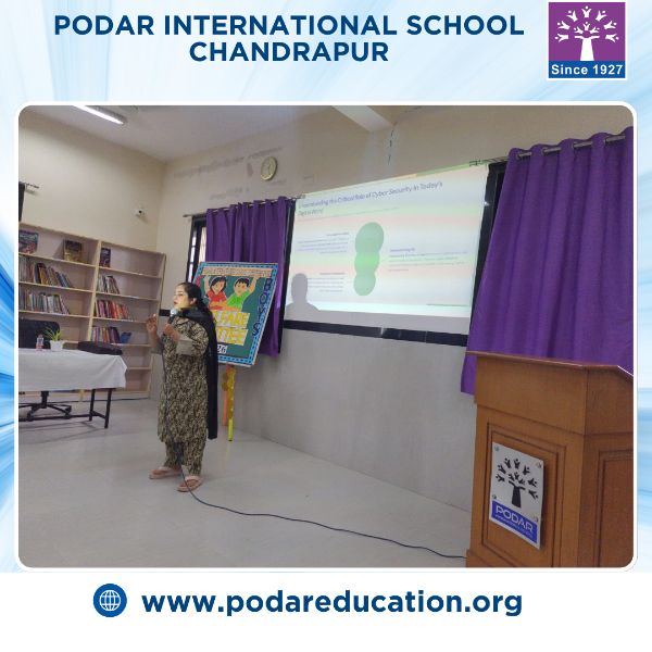 A special session on Cyber Security was conducted today for the students of Grade 7th to 10th Std at Podar International School, Chandrapur. The session aimed to educate students about the importance of online safety, recognizing cyber threats, and practicing responsible digital behavior.