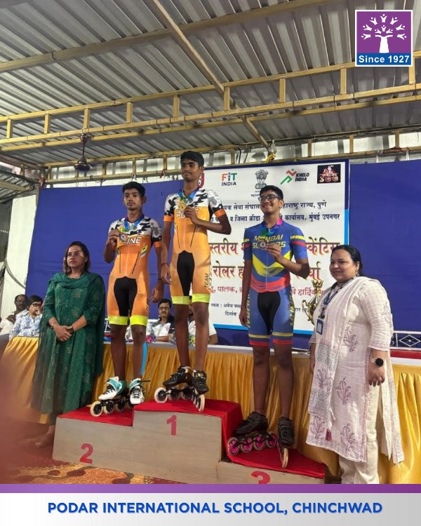 Master Shravan Bijaguppi, a proud student of Podar International School, Chinchwad, delivered an outstanding performance in Inline Skating at the State SGFI Skating Competition, where he secured 1st position and earned selection for the SGFI National Skating Competition in the Under-17 Inline Boys category.