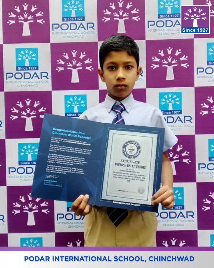 It is a proud moment for Podar International School, Chinchwad to acknowledge Mast. Devansh Balaji Ekbote, who received a Participation Certificate of Record for being part of a Guinness Book of World Records achievement.