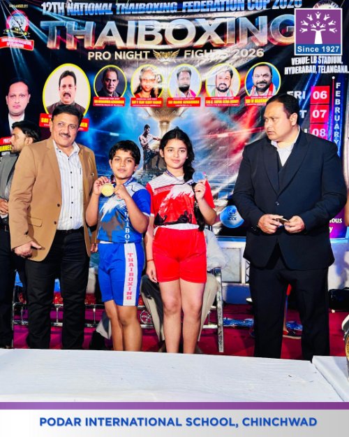 Our talented young Podarite Miss. Lisha Choudhary of class VI C has brought laurels to the school by winning the Gold Medal and a Certificate at the National Level Thai Boxing Championship held from 6th to 8th February 2026 in Hyderabad, Telangana.