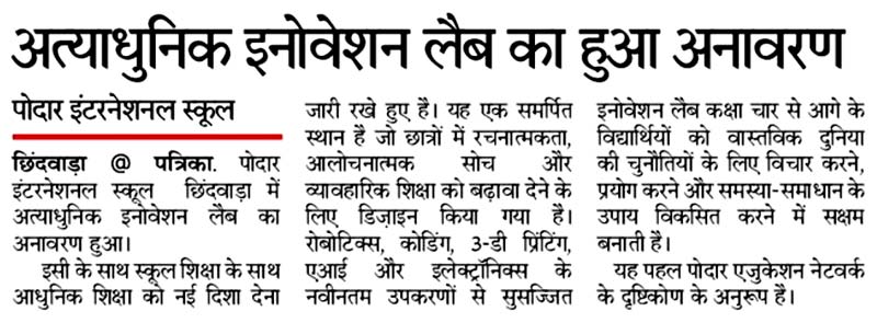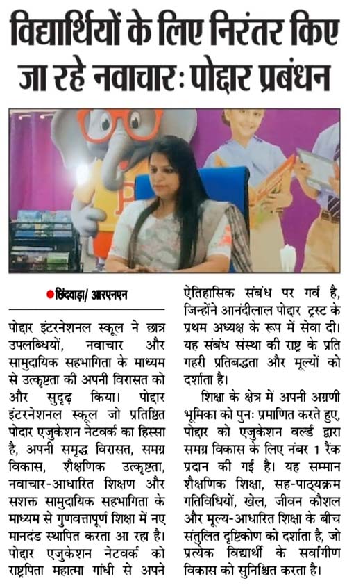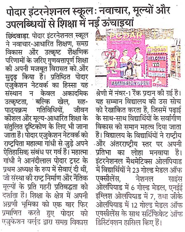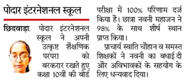 Publication : Patrika / Ugra PrabhaPIS Chhindwara consistently offers a...