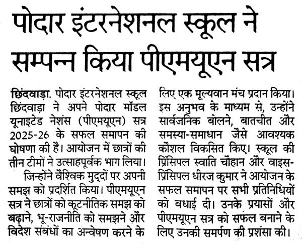Podar Model United Nations (PMUN) sessions - 2025