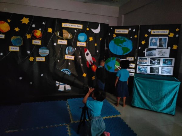 With eyes full of wonder and curiosity, the children explored stars, planets, space station, space control panel, gazed at the solar system through a telescope, created memories in the selfie corner, and learnt about the rotation and revolution of the Earth along with the layers of the Earth—all at one place.
