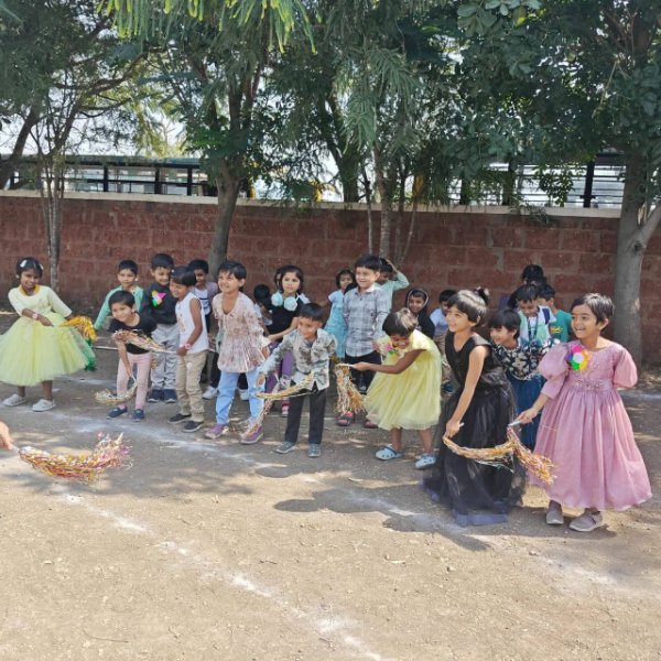 - For Jr. KG – Making a flower rangoli with sponges