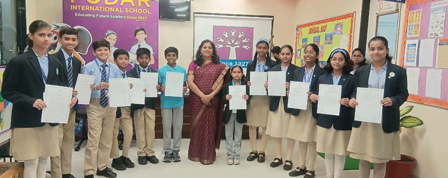 Students of Podar International School, Daund showcased their creativity in the "Swadeshi ka Sankalp" Essay & Drawing Competition, organized by Central Railway on the occasion of the Vande Bharat Express inauguration.