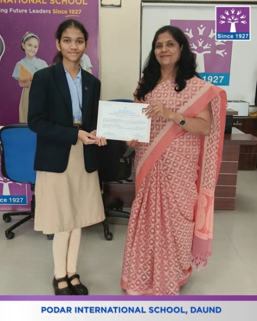 Podar International School, Daund proudly congratulates Snehal Sonawane for her commendable performance in the CBSE Aryabhatta Ganit Challenge – 2025.