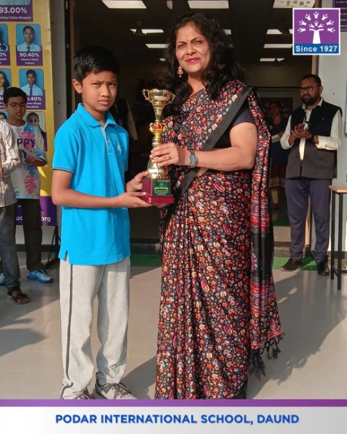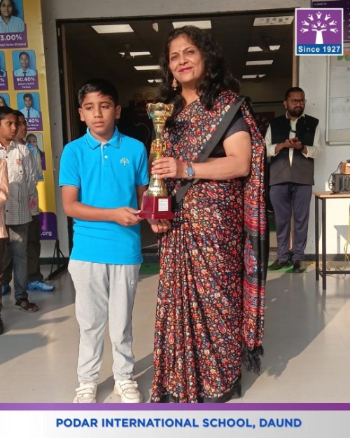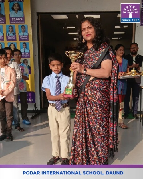 Podar International School, Daund proudly felicitated the achievers of the SOF English Olympiad under the gracious guidance of our respected Principal Mrs. Swati Kanase Ma’am, celebrating excellence and dedication in English language skills.