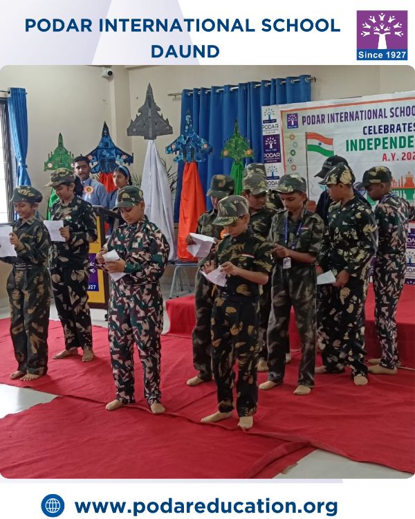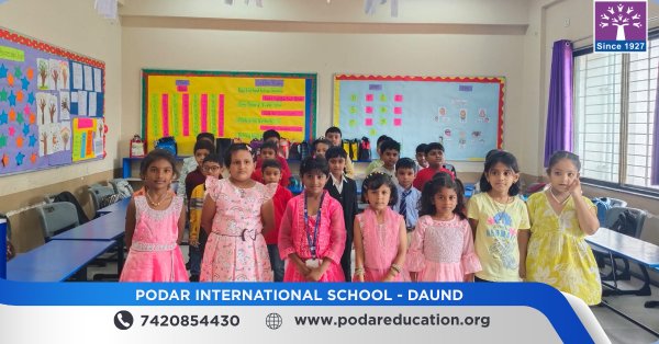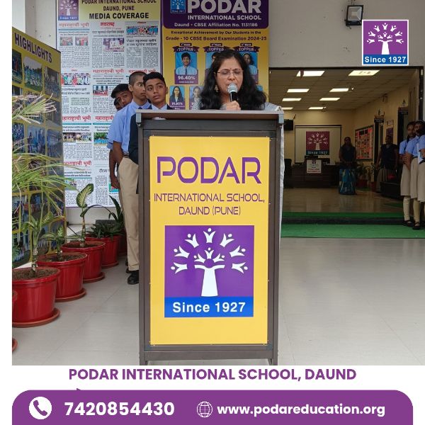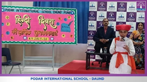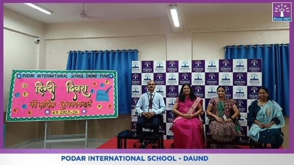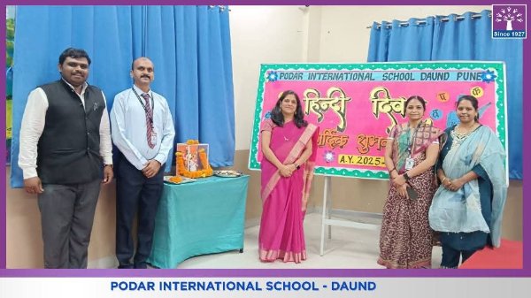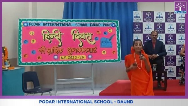 Podar International School, Daund celebrated Hindi Divas with immense enthusiasm and pride under the valuable guidance of our respected Principal, Mrs. Swati Kanase Ma’am.