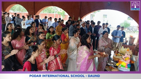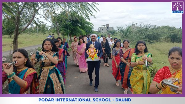 With hearts full of devotion and joy, Podar International School, Daund, bid a fond farewell to Lord Ganesha during a beautiful Ganesh Visarjan ceremony.