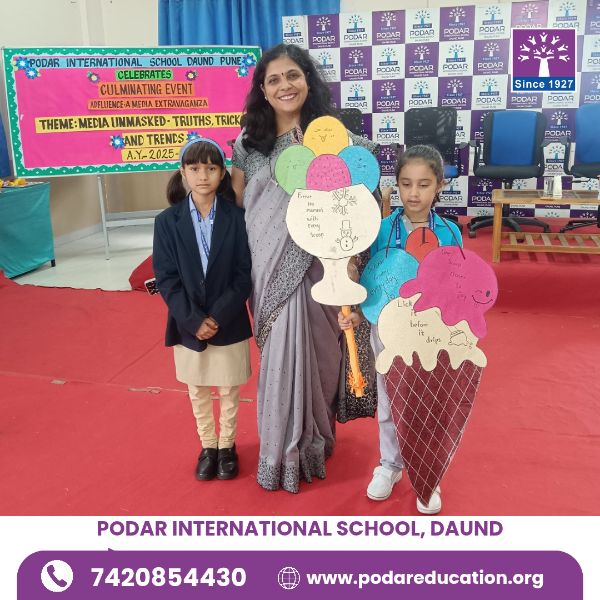 A vibrant showcase of creativity and awareness unfolded at Podar International School, Daund, as students engaged in various activities and an impactful skit under the theme Media Unmasked.