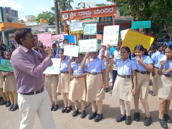 The students of grade 4,5,6,7 and 8 displayed placards of spreading awareness.