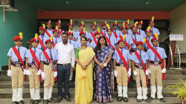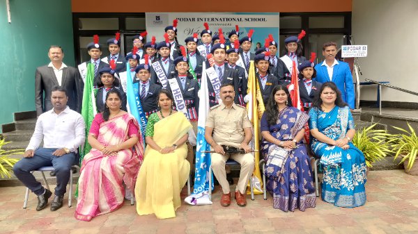 Student councils are powerful leadership and learning opportunities. A council serves as the voice for an entire student body and actively works with teachers. Podar International School Davangere conducted an Investiture ceremony on 10th July 2023. The Inauguration of the programme started by lighting the lamp by our Principal Ms.Palukuri Revathy, our chief guest Mr.Ashwin(Inspector of police) and our co-ordinators. Students of Grade 7 Stuti and Amogh welcomed the gathering by their beautiful words. Followed by invocation dance from our grade 2,3 and 4 students.