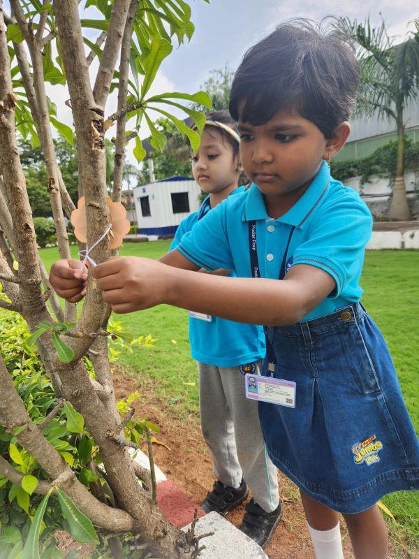 Our children tied protection bands to the plants and trees for the Raksha Bandhan celebration, “Lets bond with nature and protect it” at Podar Prep. Here are some photographs of our children.