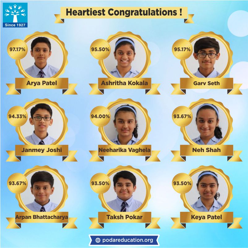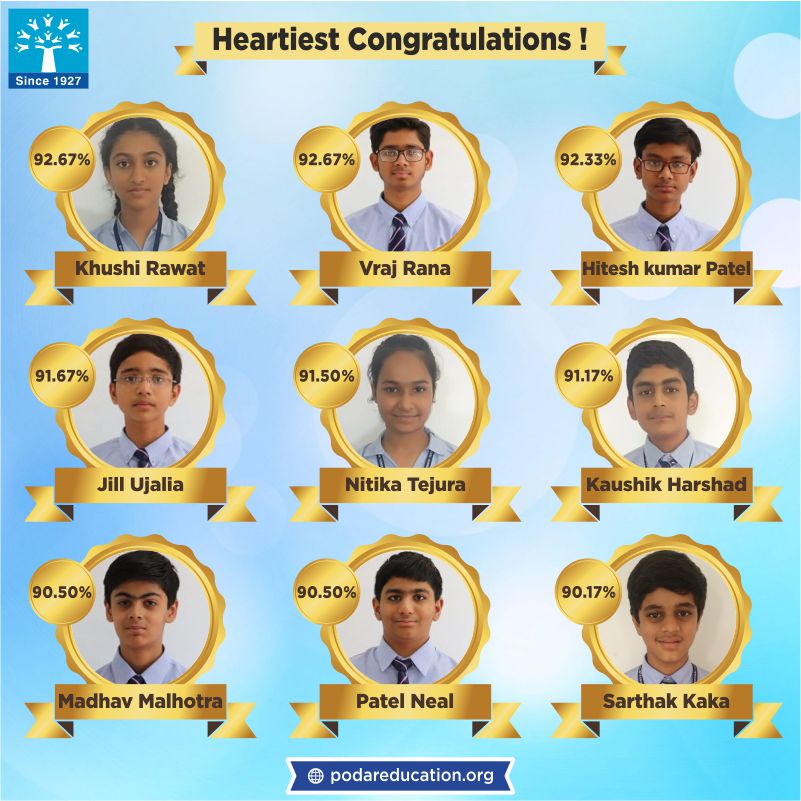 Podar International School, Gandhinagar would like to congratulate all our students who passed out with flying colours in the CBSE Std X Board Examinations.