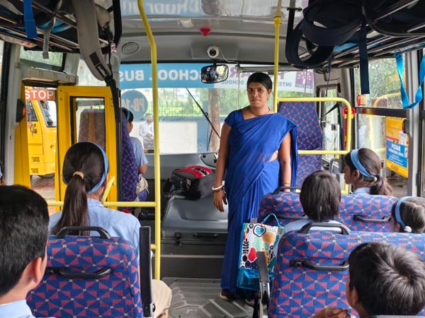 Each school bus is equipped with CCTV cameras, speed governors, two lady attendants, GPS tracking, first aid kits, and a fire extinguisher for emergencies.