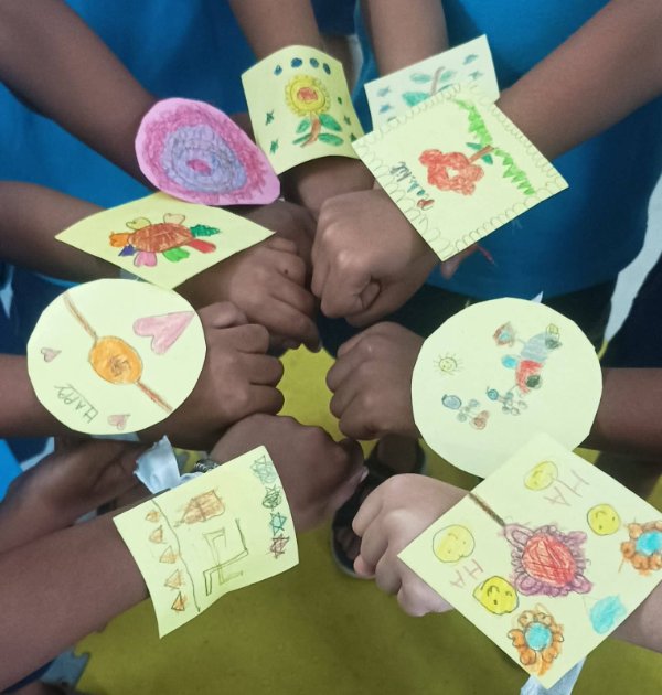 Look at our learners enjoying making rakhis and celebrating Raksha Bandhan at school.