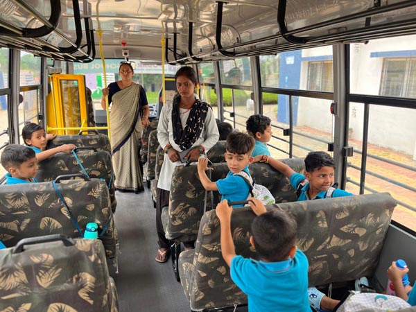 Each school bus is equipped with CCTV cameras, speed governors, two lady attendants, GPS tracking, first aid kits, and a fire extinguisher for emergencies.