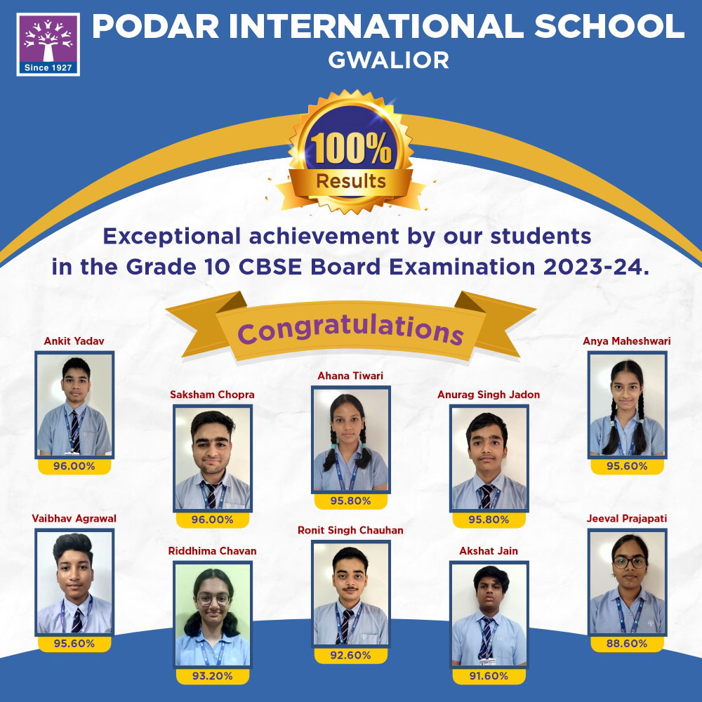 Join us in extending heartfelt congratulations to the exceptional students of Podar International School Gwalior for their outstanding achievements in the 10th CBSE Board Examinations! Your hard work, dedication, and perseverance have led to remarkable results. Keep shining bright and pushing the boundaries of excellence in all your endeavors!