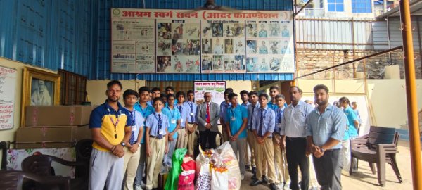 Accompanied by their teachers and our Honorable Principal, Mr. Parveen Kumar Zear, the students visited the shelter home to donate essential items and spend meaningful time with the residents. This visit was not just about giving—it was about learning the value of compassion, human connection, and responsibility toward society.