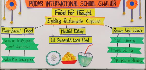 Podar International School, Gwalior, joyfully organized a vibrant and inspiring event — “Sustain-a-Bite: The Future Food Fair” — for Grades 1 to 8 on 16th October 2025. The event showcased creativity, innovation, and sustainability in food, highlighting the importance of healthy and eco-friendly living.