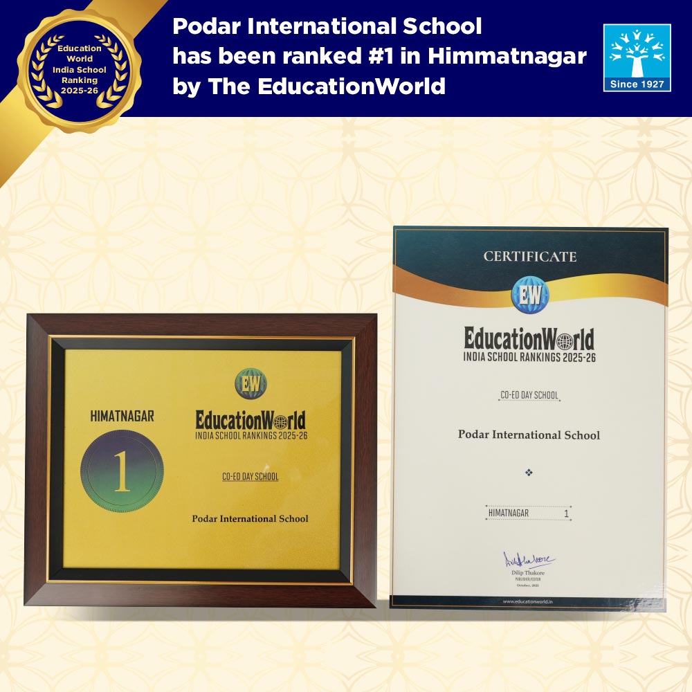 Podar International School has been ranked #1 in Himmatnagar by The EducationWorld - 2025