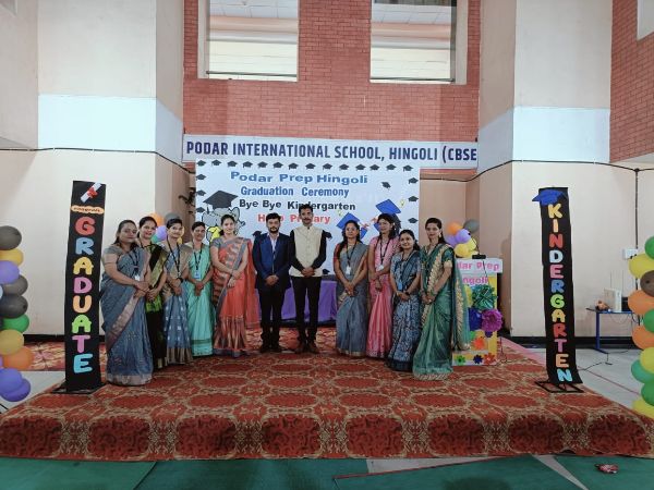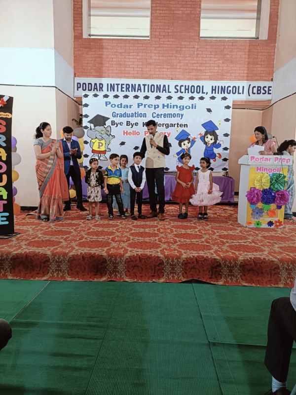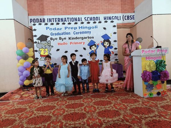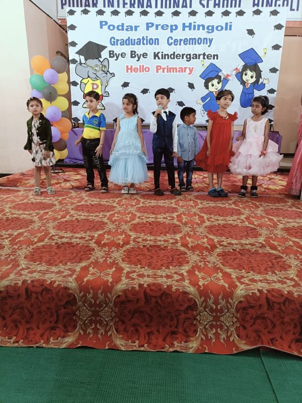 Graduation ceremony was celebrated at Podar Prep,Hingoli as “Bye Bye Kindergarten, Hello Primary” with fun filled activities on 9th March 2024. The primary purpose of a kindergarten graduation ceremony is to celebrate the children's achievements, promote a sense of accomplishment and pride, and prepare them for the next step in their educational journey. It also serves as a memorable milestone for families and teachers alike.