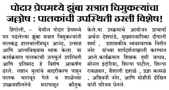 Podar Prep Media Coverage Hingoli Jawala Palsi Road, Maharashtra