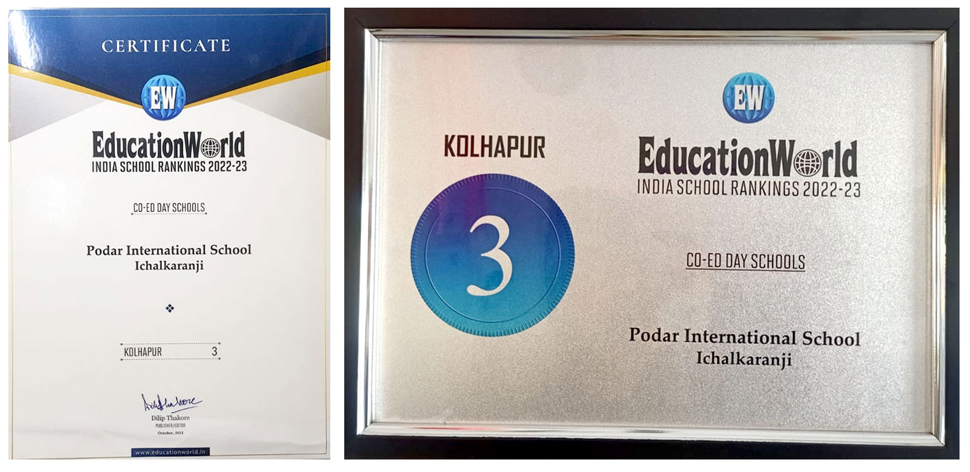 We are ecstatic to announce that Podar International School, Ichalkaranji is ranked 3rd in the 2022-23 EducationWorld India CO-ED DAY School Rankings in Kolhapur District.