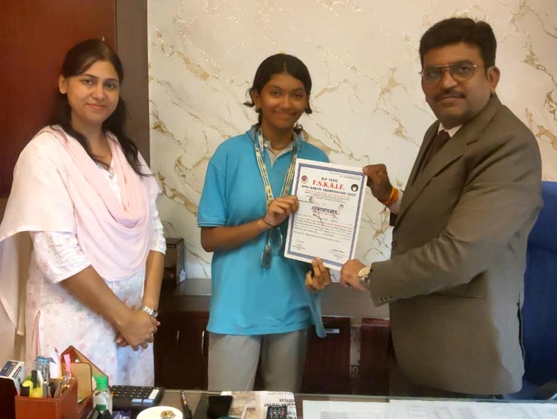 Nidhi Kulkarni, a student of Grade VII – Dynamic, secured the Gold Medal in the Fifth Indore District Yogasana Championship 2025 by attaining first position in Twisting Body Individual and fifth position in Forward Bend Individual. She also achieved the second position in the SGFI District-Level Traditional Yogasana Competition.