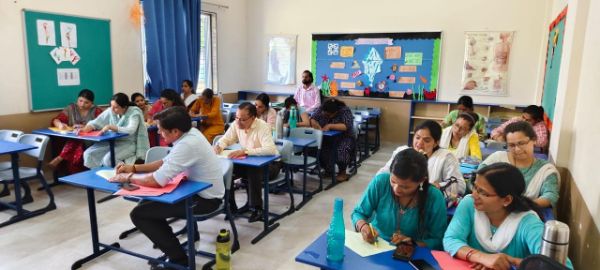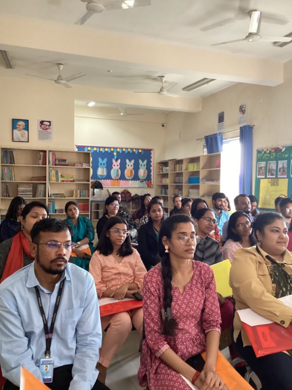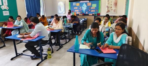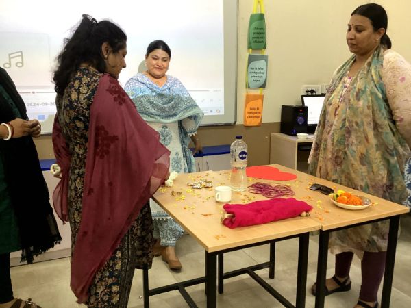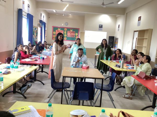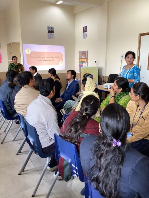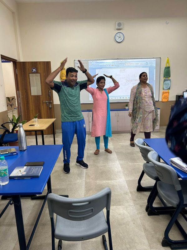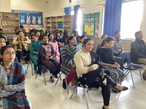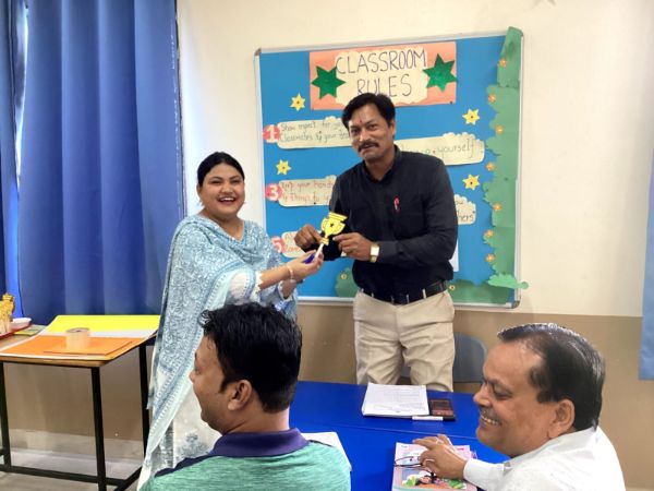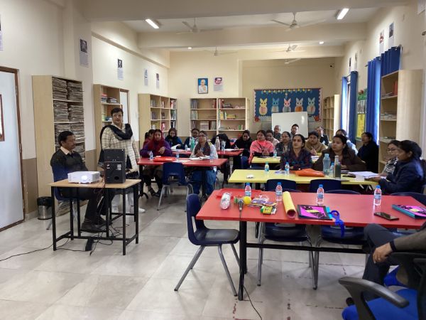 Mrs. Priyanka Neekhar and Mrs. Neha Arora led an insightful session, sharing essential teaching skills and strategies for the classroom. Teachers actively participated, chose topics, and demonstrated their approaches, while engaging in fun icebreaker activities to foster collaboration and creativity.
