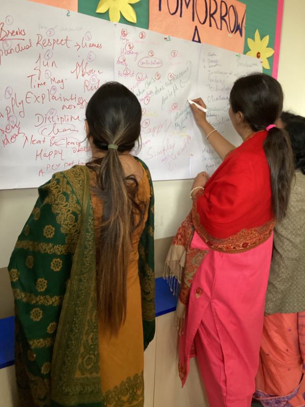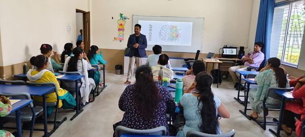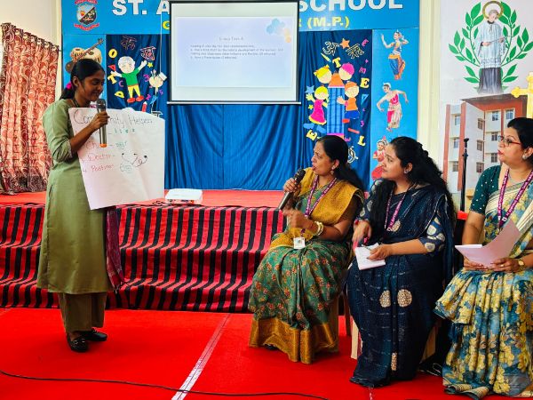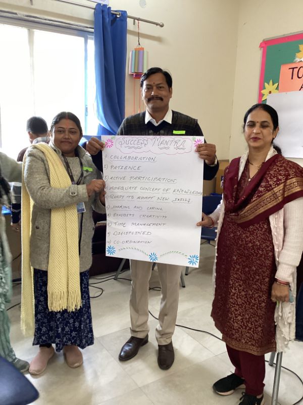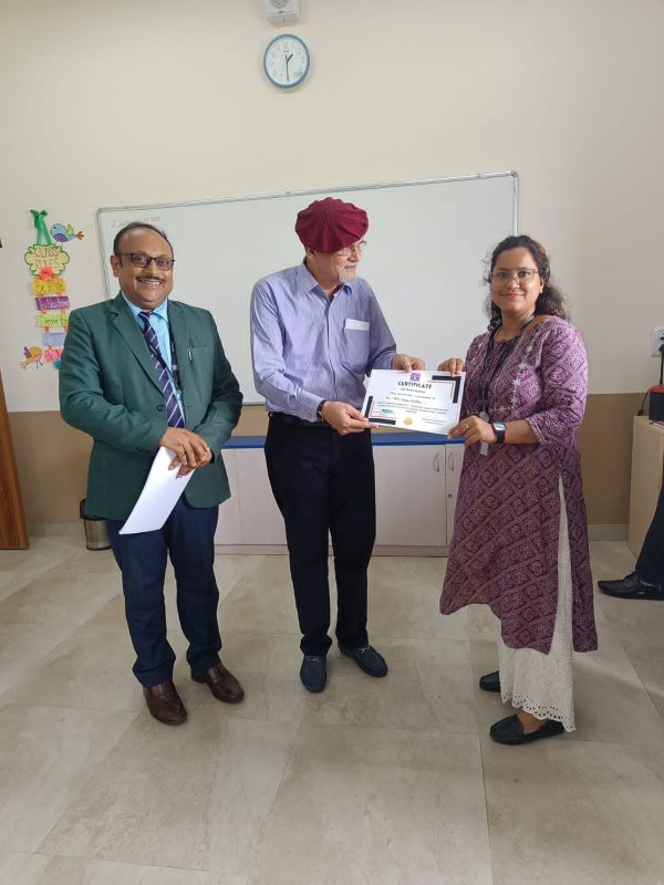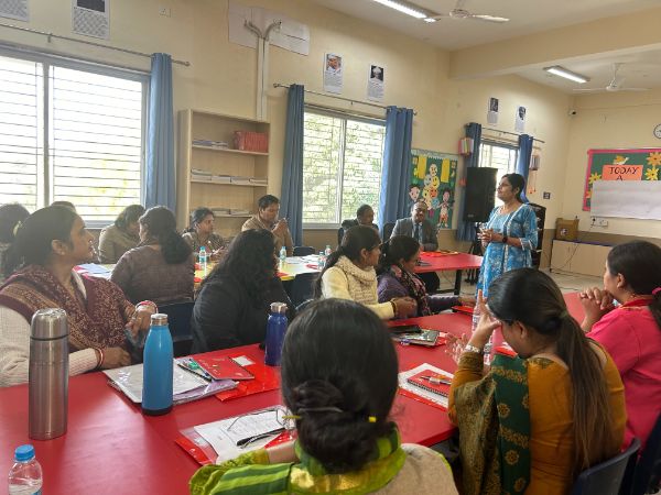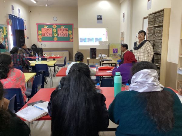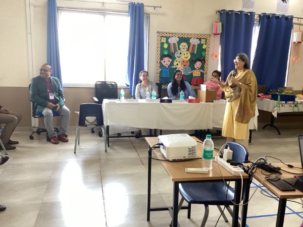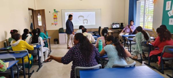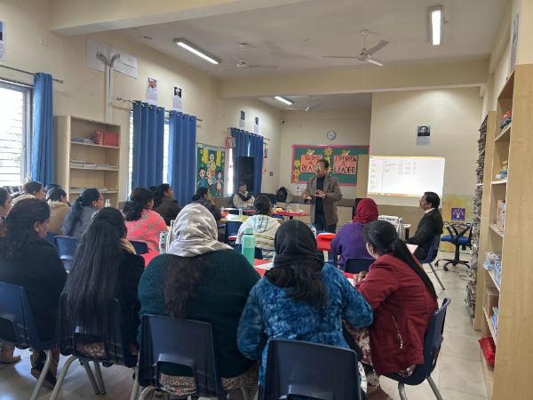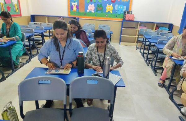Mrs. Priyanka Neekhar and Mrs. Neha Arora led an insightful session, sharing essential teaching skills and strategies for the classroom. Teachers actively participated, chose topics, and demonstrated their approaches, while engaging in fun icebreaker activities to foster collaboration and creativity.