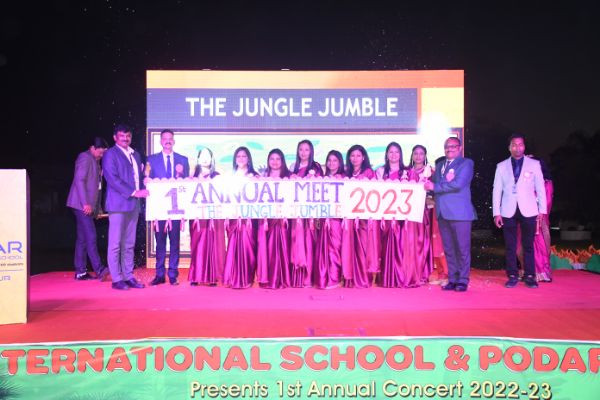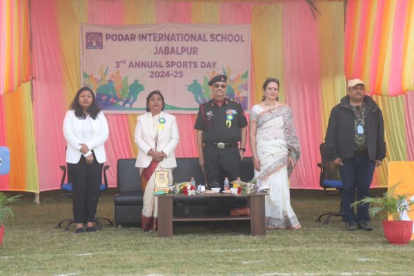 Podar International School,Jabalpur recently celebrated 3rd Annual Day for the academic year 2024-25 with great enthusiasm. The event was themed “Echoes of Tradition and Beats of Tomorrow,” showcasing a perfect blend of cultural heritage and modern aspirations. Students participated wholeheartedly, presenting vibrant performances that captivated the audience. The occasion was graced by Chief Guest Mr. Muneera Khan and Guest of Honour Mr. Rajeshwar Sharma, GM, MP Region, Podar Group. Their presence added immense value to the celebration. Principal Mr. Bharat Bhushan Jha delivered an inspiring address, motivating students, teachers, and parents. He also felicitated students for their outstanding achievements in various fields.Overall, it was a memorable day filled with joy, appreciation, and a celebration of talent.