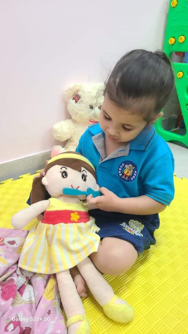 Engage in the delightful activity of singing rhymes, a charming way to stimulate creativity and language skills in children.