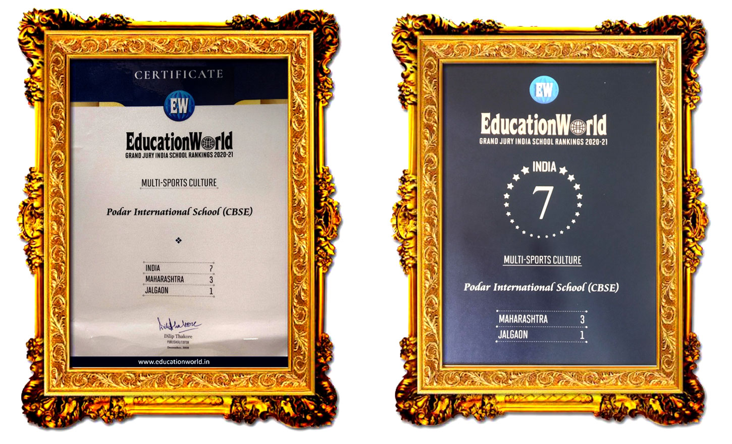 We are happy to share that EducationWorld Grand Jury India School Rankings has bestowed No.1 Position upon PIS JALGAON in the entire city with a marvelous Trophy and a Certificate.