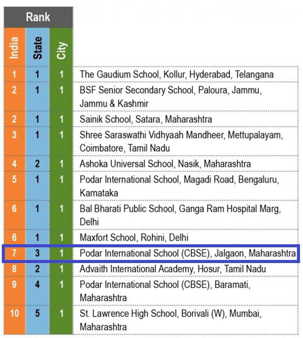 The EducationWorld and specially constituted Grand Jury comprising eminent educationists ranked the Top 10 Schools across the nation.