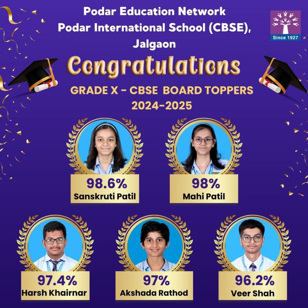 Celebrating Success: Podar International School Jalgaon Students Shine in 10th CBSE Board Exams 2024-2025