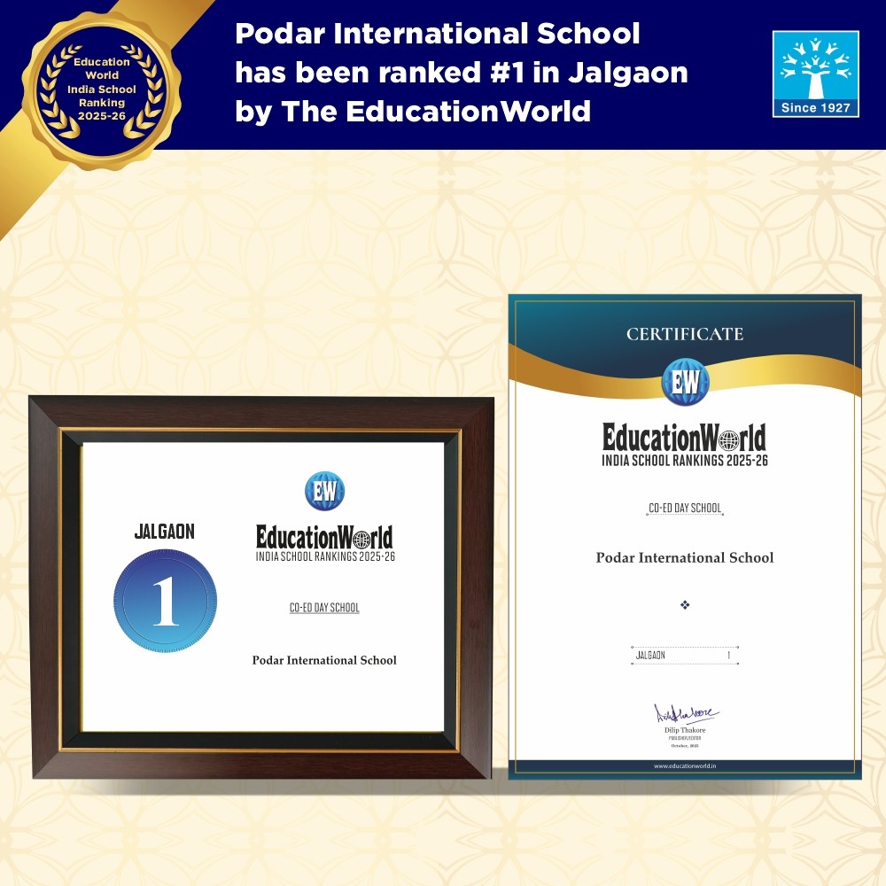 Podar International School has been ranked #1 in Jalgaon by The EducationWorld - 2025