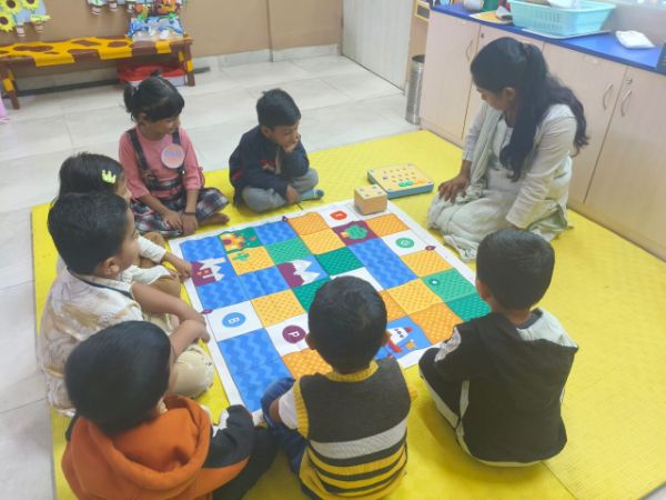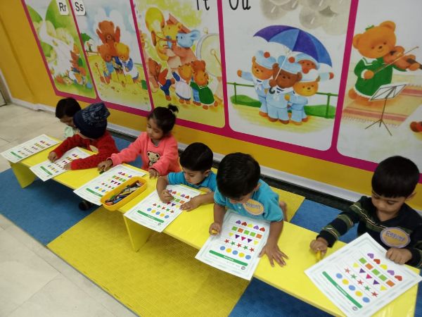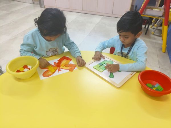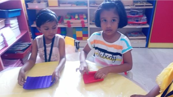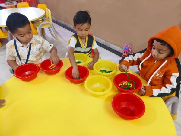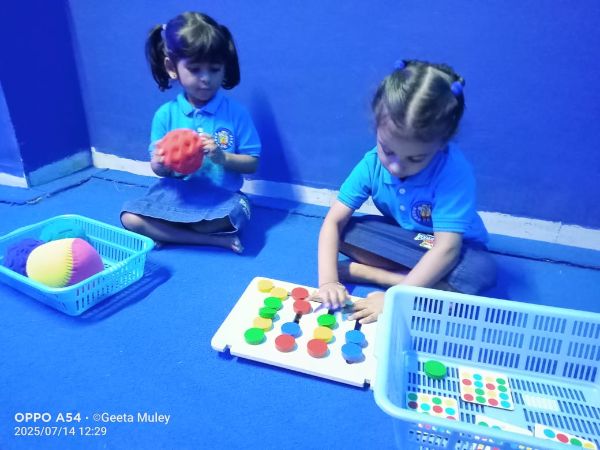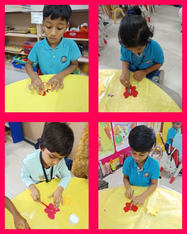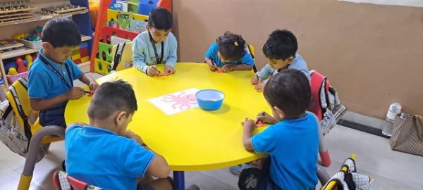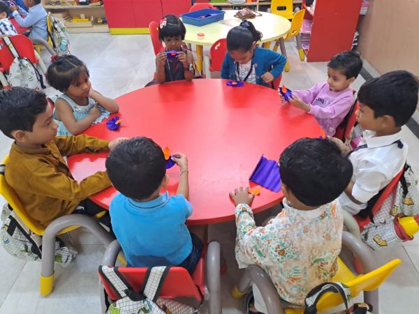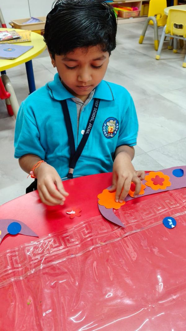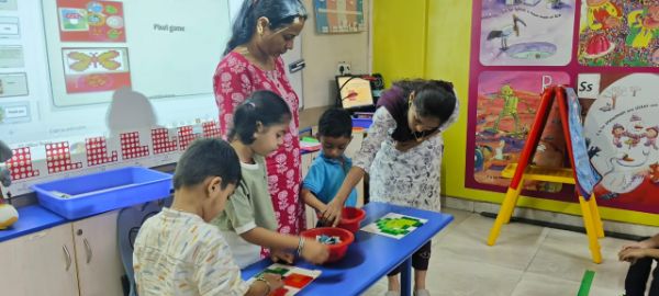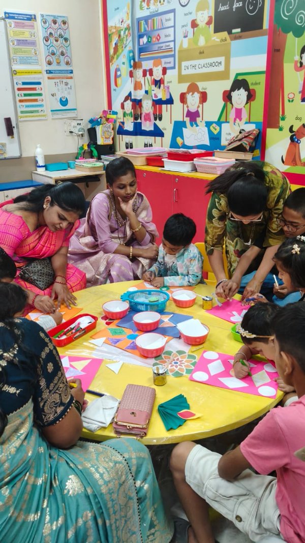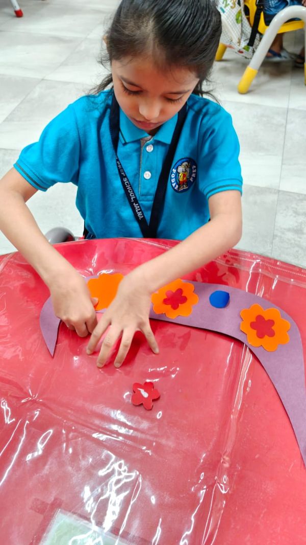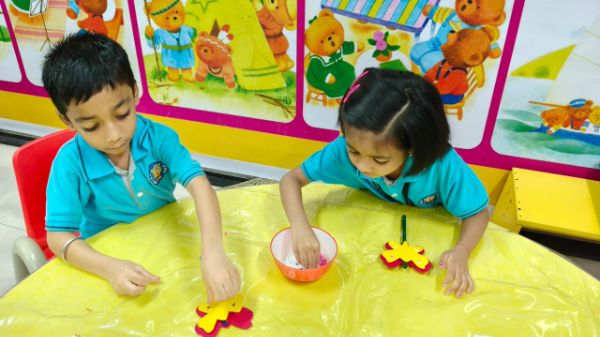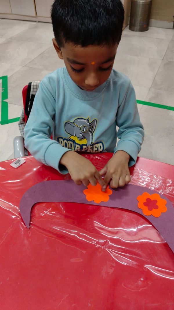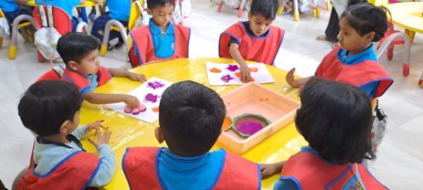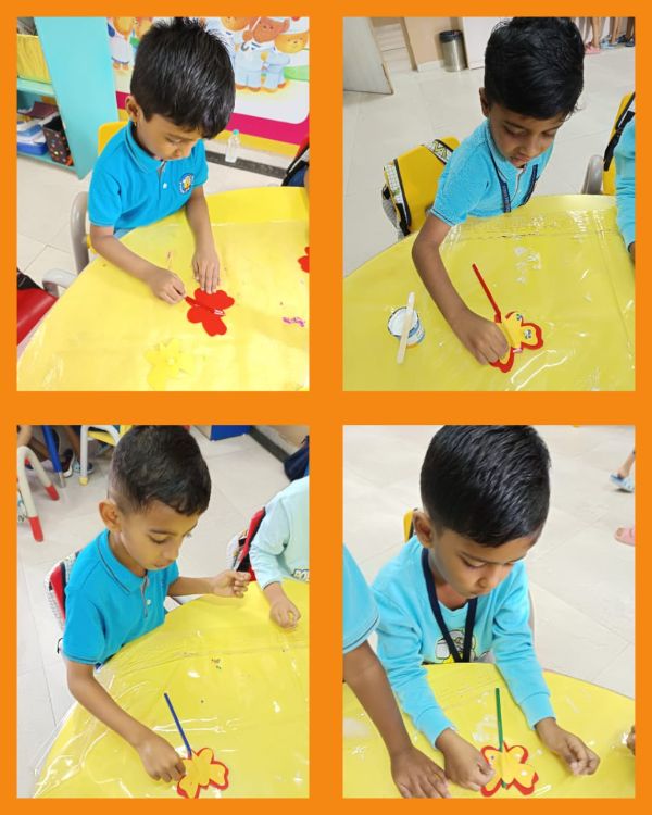 - Junior Kindergarten - Making a flower rangoli with sponges