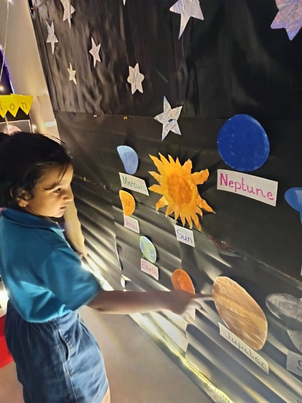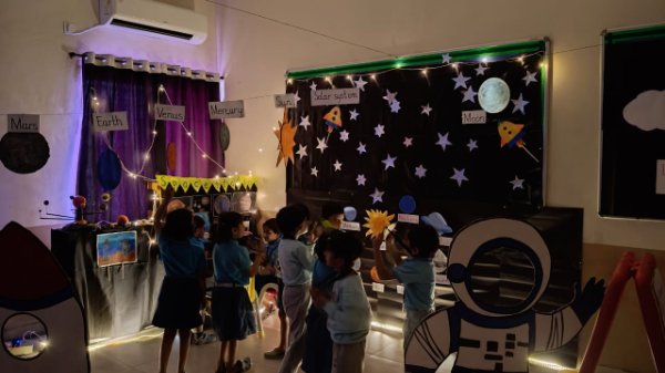 Our little explorers had an exciting day at the Planetarium! With eyes full of wonder and curiosity, the children explored stars, planets, space stations, control panels, gazed at the solar system with a telescope, created memories in the selfie corner, and learnt about the rotation & revolution of Earth and the layers of Earth — all at one place.