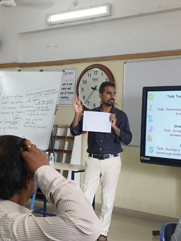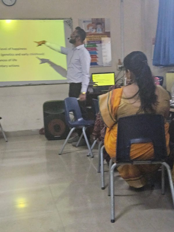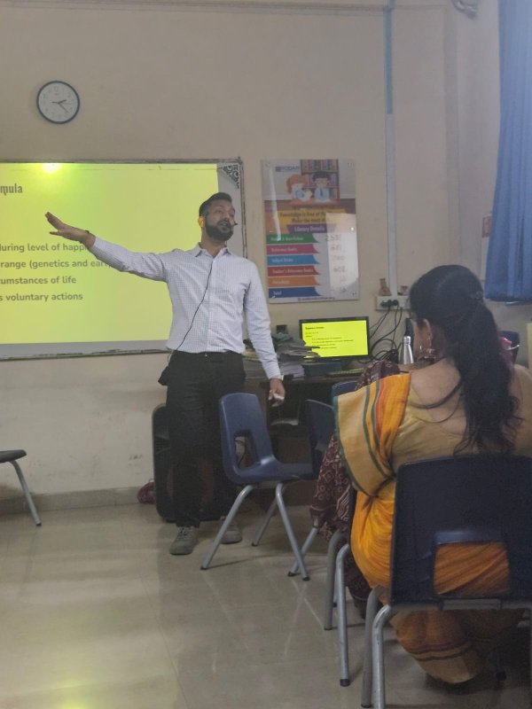 The topic for the session was “Happy Classroom.” The session was facilitated by Tr. Tushar K, who shared valuable insights and practical strategies for creating a positive and engaging classroom environment. The training emphasized building joyful learning spaces, strengthening teacher-student relationships, and fostering emotional well-being through interactive classroom practices.