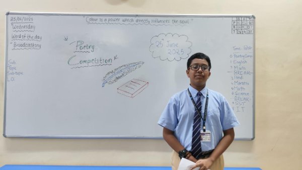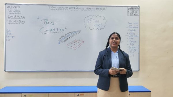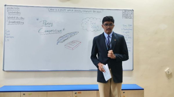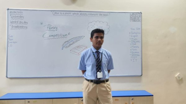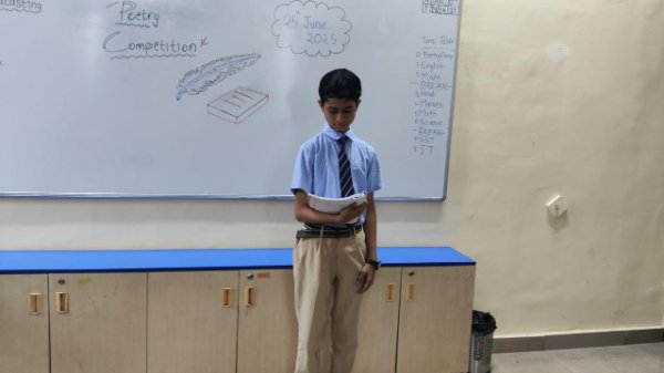 An English Poetry Competition was held in our school on 25th June 2025 with great enthusiasm and active participation from students of all grades. The competition aimed at encouraging students to explore their creativity, improve their expression, and develop confidence in public speaking.